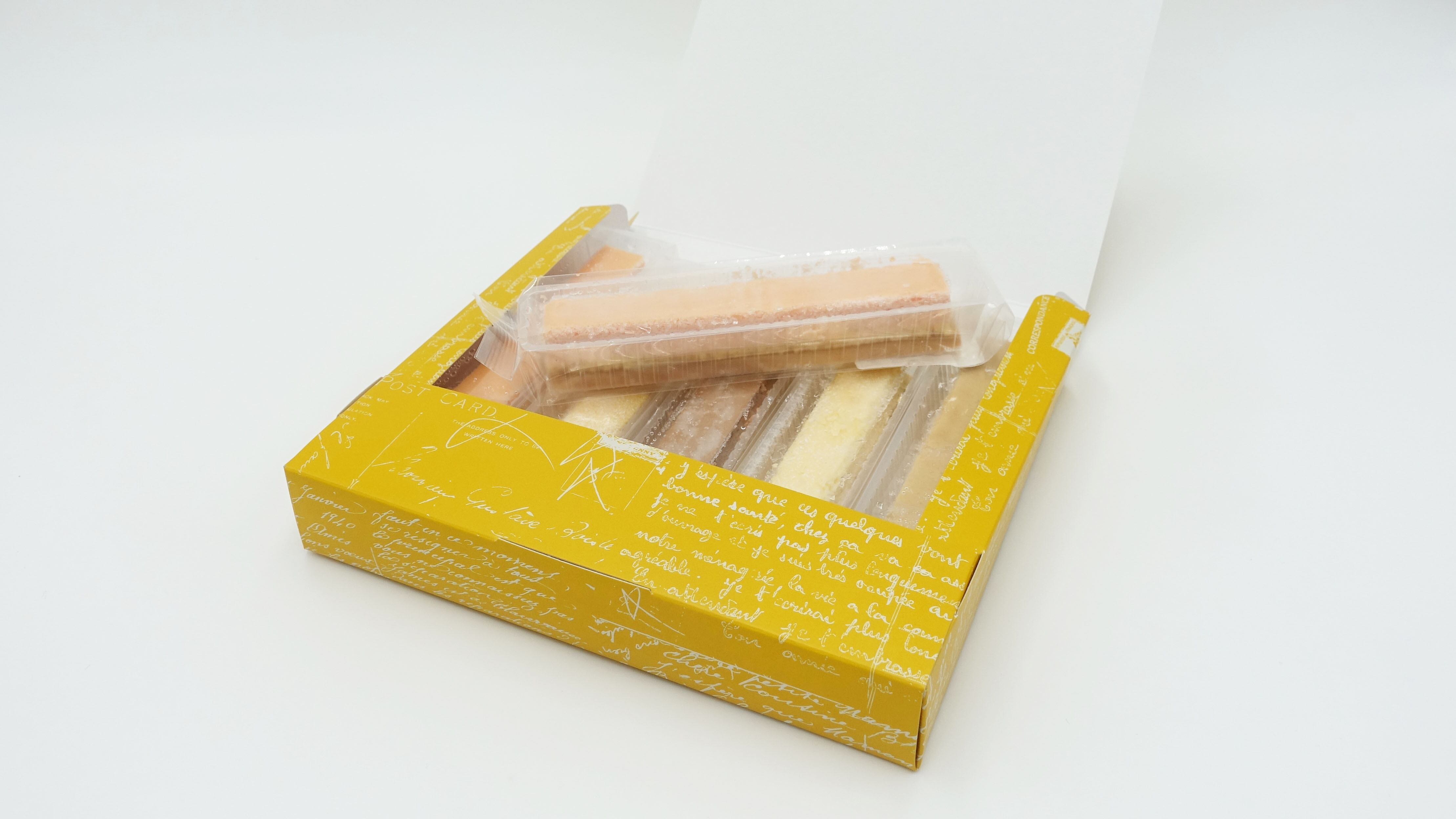 食べやすいスティックタイプのチーズケーキは、3層からなる生地を一つ一つ丁寧に焼き上げているため、タルトの風味、ジェノワーズ、ベイクドチーズのしっとり濃厚な味の対比が感じられます。